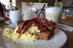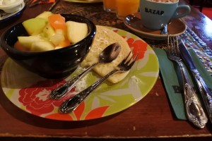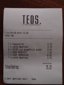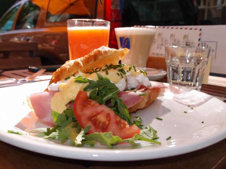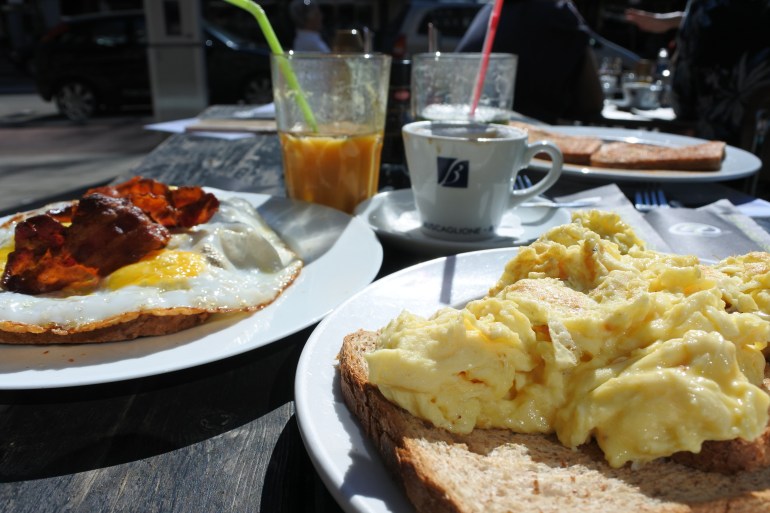 We besloten de zondag weer es te beginnen met een lekker ontbijt buiten de deur.