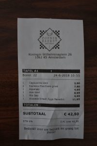 Het was er vrij druk, toen Robin binnenstapte om alvast een plekje te zoeken, en er waren veel plekken reeds gereserveerd. Parkeren is gratis, maar omdat Oost nu heel populair is geworden, is het wel even zoeken naar een plekje om te parkeren.